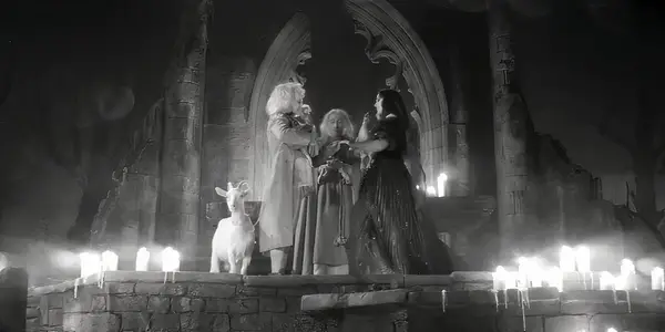 Делорес and Betelgeuse initially seemed drawn to each other through animal magnetism, an attraction Betelgeuse fully embraced. Seemingly wealthier than her new husband, Делорес and Betelgeuse went through a seemingly supernatural wedding ceremony where a goat was sacrificed and chickens were killed to celebrate their union. This plays into the reveal that Делорес was actually the leader of a cult, who sought to uncover the secrets of immortality. Весілля - це темна готична справа , який бетелгеуз сприйняв. Хоча Betelgeuse вважав, що весілля є законним, фільм розкриває, що Делорес насправді мав смертельну мотив, що бажає одружитися на Betelgeuse.
