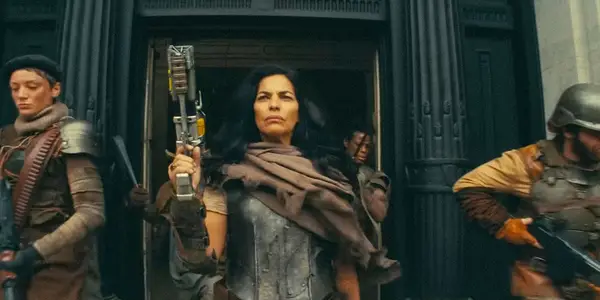 Саріта Чудхурі, як Молдавер, що тримає пістолет у Fallout | Саріта Чудхурі | Молдав |